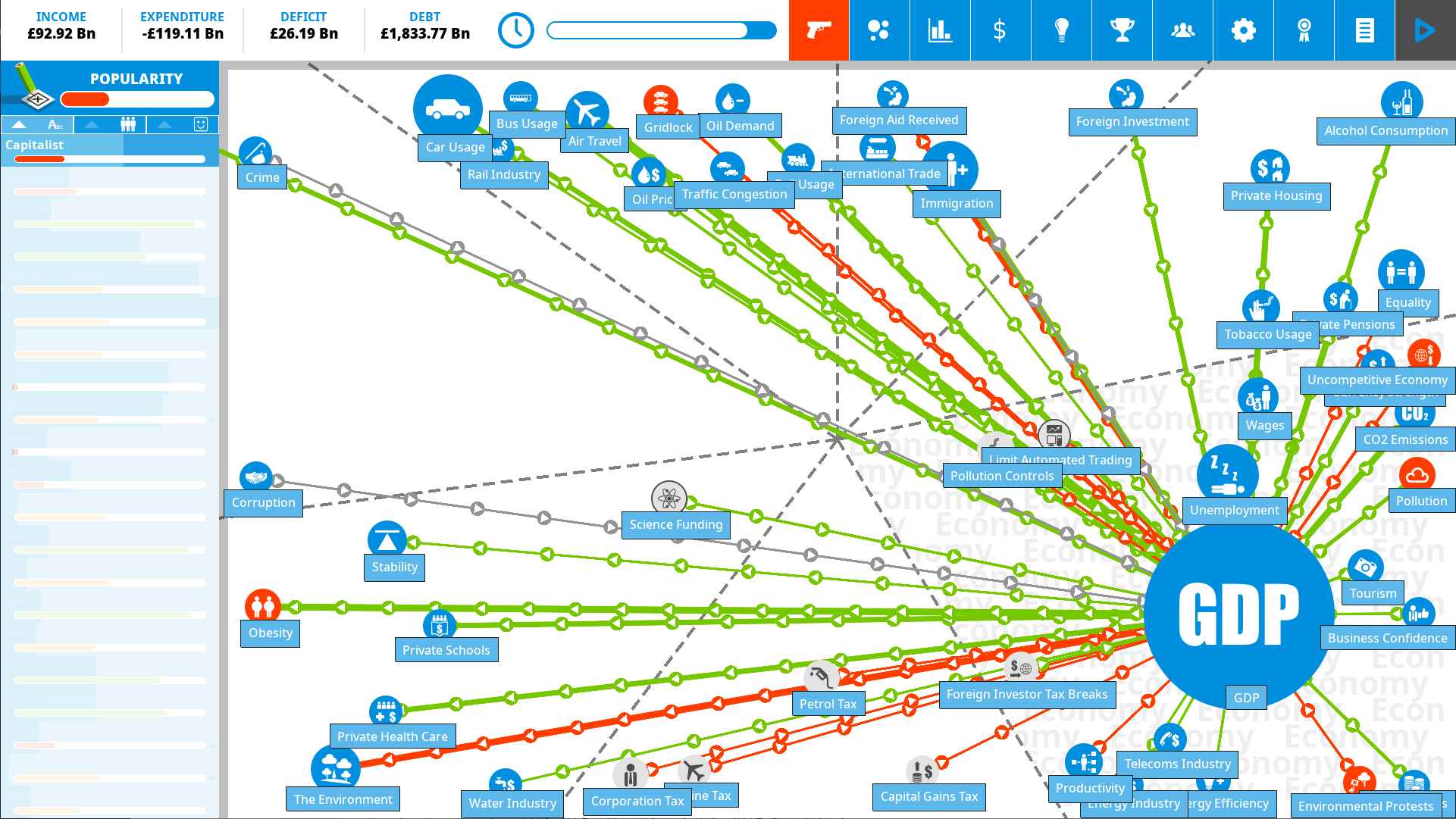 New mechanics including...Coalition government and third-parties, allow for more accurate modelling of different countries. Emergency Powers give you more political capital in a crisis! Dilemmas can have 3 or more choices and display the outcomes once selected. Media reports give feedback on what the public thinks, and Donors and Ministers make specific political demands in exchange for their support! |