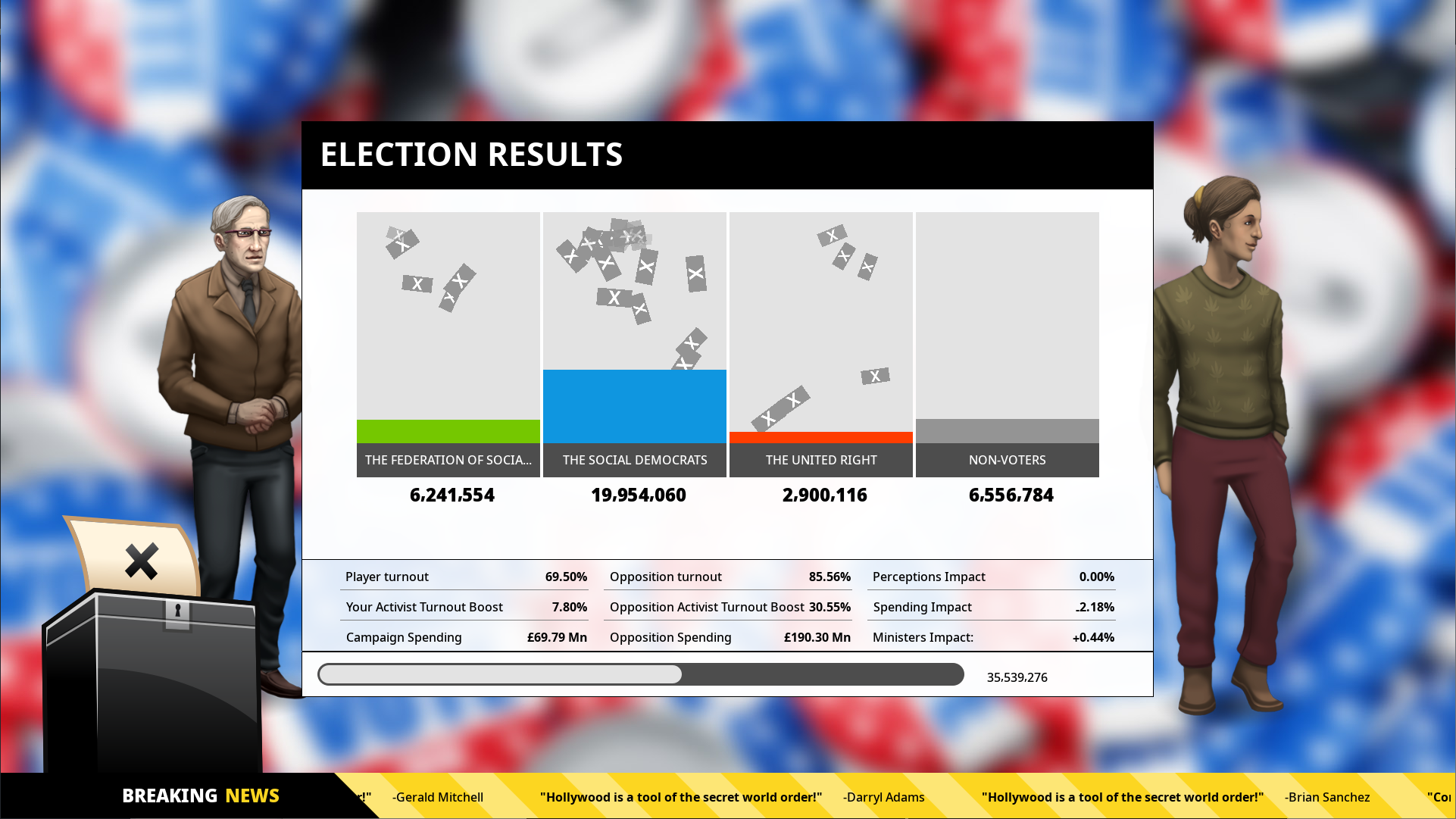 Completely new events. Almost every event in the game has been replaced with new, sometimes more topical ones, including Cryptocurrency Crash, Coastal Oil Spill, Virus Outbreak, High-rise Blaze, Cyber-Attack, Football Team Defection, Female Leader, Gay Leader, School Shooting, Social Media Stupidity, Quantum Computing Breakthrough and lots more |